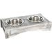 Voer/waterbak-set, RVS/hout, 2 × 0,75 l/ø 15 cm/42 × 10 × 22 cm, wit