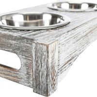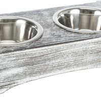 Trixie Voer- / Drinkbak Set Roestvrij Staal Hout Wit 42 x 22 x 10 cm 2 x 750 ml
