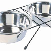 roestvrij * 2 roestvrijstalen voedsel/waterbakjes met houder * metalen houder, poedercoating, zwart * anti-slip door rubberen voetjes * geschikte reservebakjes: artikel 24840?24844Specificaties