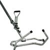 Hierna bevestigt men de touwtjes aan de poten van het kalf en aan de haken op het krikgedeelte en zet men de touwtjes onder spanning.