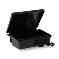 Voerdoos met sleutelRobuuste muizenvoerdoos voorzien van een slot met sleutel. Als extra beveiliging kan de deksel met een tie-wrap worden vastgezet (tie-wrap niet meegeleverd).