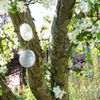 Niemand houdt van vogeluitwerpselen op hun terrasmeubelen, aangevreten kersen of reigers die de vijvers leegvissen. Maar het is fijn om in de lente gewekt te worden door de vogels met hun gezang. Met de Vogelfrei reflectoren van Gardigo kunt u beide ervaren. Hang deze reflectoren op uw terras, fruitbomen en rond uw vijver om vogels af te schrikken. Het pakket bestaat uit 8 roestvrijstalen spiegels die in de wind draaien en het licht reflecteren. Dit verontrust vogels en moedigt hen aan om weg te vliegen. Dit pakket bevat 4 sets inclusief 2 roestvrijstalen spiegels met ophanghaken.Specificaties