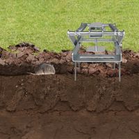 Voor de meeste woelmuisvallen moet je een gat graven om de woelmuistunnel bloot te leggen. Dit is niet gemakkelijk en vereist enige vaardigheid of geschikt gereedschap. Met onze professionele woelmuisval is dat niet nodig. Voor deze val brengt u de woelmuistunnel op één plek tot instorten. Dit is niet moeilijk, want de tunnels lopen doorgaans goed zichtbaar dicht onder het oppervlak van het gazon. Op de ineenstortingsplaats plaatst u vervolgens de val in de grond, zodat de scharen zich in de tunnel bevinden. Door op de spanbeugel te trappen wordt de val scherp gesteld. Hierdoor daalt de ontgrendelaar af in de tunnel. Als de woelmuis probeert de tunnel weer vrij te graven, beweegt de ontgrendelaar omhoog en klapt de val krachtig dicht. Aan de positie van de spanbeugel kunt u zien of de val is geactiveerd, zonder deze uit de grond te halen.Specificaties
