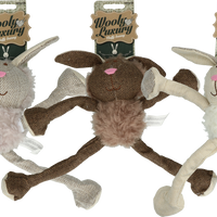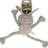 Dit knuffelkonijn is gemaakt van superzachte fleece en duurzaam en sterk canvas. Dubbel gestikt en met een pieper voor extra speelplezier. Met extra lange armen en benen van canvas om mee te gooien en om trek-spelletjes mee te spelen. De armen en benen bevatten een flos-touw en kunnen langer en korter gemaakt worden.