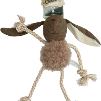 Dit knuffelkonijn is gemaakt van superzachte fleece en duurzaam en sterk canvas. Dubbel gestikt en met een pieper voor extra speelplezier. De armen en benen zijn van flosstouw om het gebit van uw hond te reinigen.