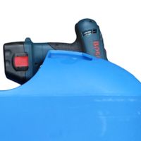 Simpel zaagsel verstrooien in ligboxen maar ook in kalverboxen of paarden boxen Kent een inhoud van 12 liter en is met bijna ieder type accuboormachine te bedienen